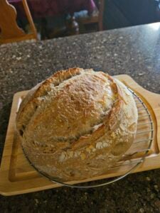 This recipe tastes really good. I like the flavor even more than the white bread artisan loaves, which are also really good. The dough was easy to work with and the loaf rose nicely. Rebekah hit a home run with this one.