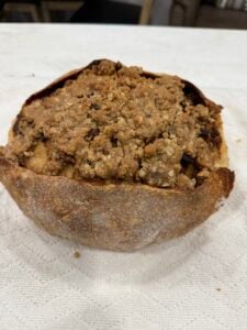 “It hits that sweet spot between cozy fall dessert and rustic artisan sourdough. The reduced cider + shredded apple give natural sweetness and moisture, the cinnamon-sugar swirl makes it feel indulgent, and the oat crumble is just fun. My kids are begging to make it again!” –Recipe tester from Downingtown, PA