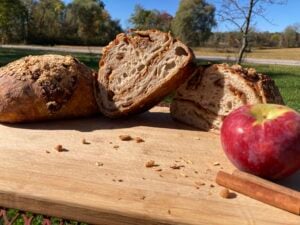 “It hits that sweet spot between cozy fall dessert and rustic artisan sourdough. The reduced cider + shredded apple give natural sweetness and moisture, the cinnamon-sugar swirl makes it feel indulgent, and the oat crumble is just fun. My kids are begging to make it again!” –Recipe tester from Downingtown, PA