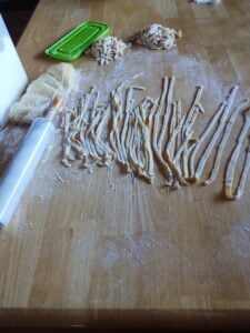 I made the pasta and it turned out terrific! I couldn’t believe how much flour it took to keep the noodles from sticking together! I left the dough in the fridge for two days!