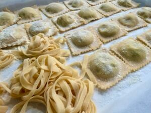 You don’t need a pasta maker to make pasta, but it makes things easier. If you don’t have one, you can roll the dough out with a rolling pin and cut it into strips with a knife or pizza cutter.