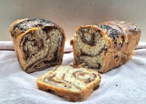 We do love the taste of this loaf. Yesterday was the second time I baked it, and I’m pretty sure it’s not the last. I added walnuts to the filling and it tastes great.
