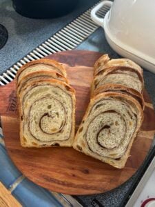 Let it cool completely before slicing! This takes 1-2 hours, but cutting into warm bread will result in gummy slices and a collapsed loaf. Trust me, the wait is worth it for perfect slices that show off that beautiful swirl.