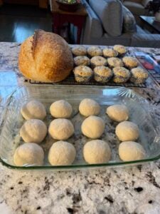 | 9 am | Shape rolls; let proof on the counter Note: you can transfer the shaped rolls to the fridge at this point to hold them for later baking. |