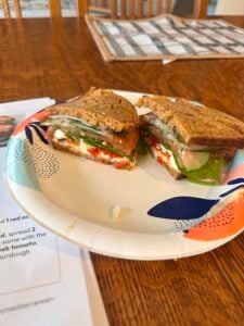 This sandwich is simple and easy to put together, and if you do decide to make the tomato basil sourdough bread yourself… you’ll be in heaven.
