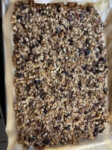 So good! I made a double batch of this and split it between a half sheet pan and this Pampered Chef snack bar maker silicone bar making pan. I used half date syrup, half honey as the liquid sweetener, melted coconut oil as the oil and golden Monkfruit instead of brown sugar. I subbed mini chocolate chips for the coconut flakes and cocoa powder for the cinnamon. I used dried cherries, pecans, and a mix of pepitas, flax, and chia seeds. Oh and I used the quick oats because I had 400 grams lingering in my pantry that I wanted gone. It turned out amazing!