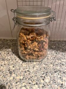- Let cool for 10 minutes before breaking apart into clumps. Store in an airtight container (I prefer glass) at room temperature. Keeps for up to 4 weeks.