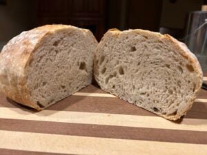 I made this twice already and it turned out great both times. Thank you for developing a ‘fast track’ recipe. I have a clay bread baker that I use for the boule and it turns out great. No burned bottoms.