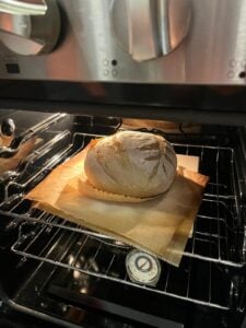Once your dough is fully proofed, preheat your oven to 450°F with your Dutch oven or bread dome inside to get it nice and hot.