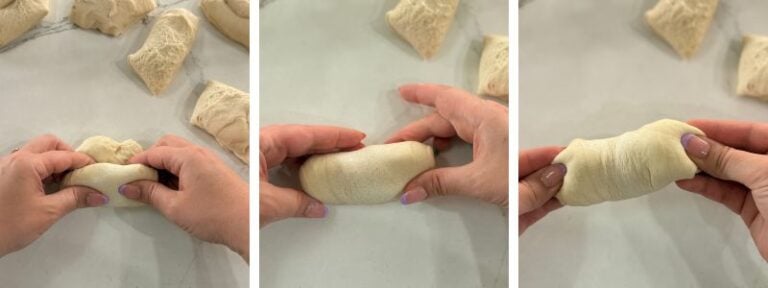 - Working one piece at a time, roll each piece into a cylinder about 6 inches long and pinch the seams on each end.