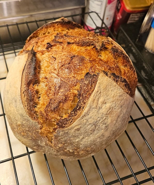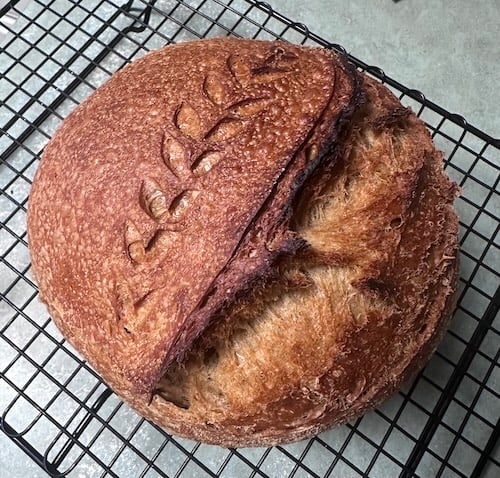 First of all this dough was so easy to work with which is a bonus. Then I knew it would turn out well when scoring easily. THEN it baked beautifully. Holy moly next step cutting into this gorgeous boule, I stopped breathing. This is the best loaf ever, full of warmth and joy. Yes that’s what I said. Joy. TY so much ❤️