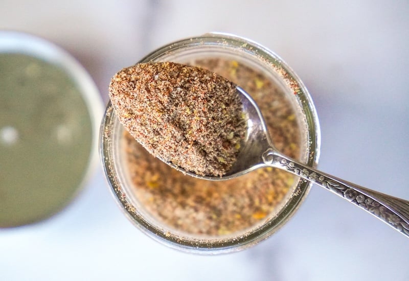 I like to keep mine in an 8-ounce mason jar fitted with a spice shaker lid. You can buy these special mason jar lids (affiliate link) on Amazon. It’s also available directly on their website. They make it super easy to sprinkle straight from the jar.