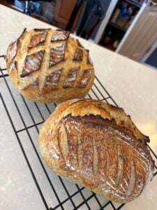 Here’s my recipe for two loaves of sourdough bread: