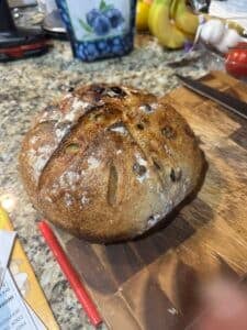 What went wrong: The lemonade didn’t deliver much lemon flavor at all, and the dough was stickier than expected. Plus, fresh blueberries caused gummy spots in the baked loaf. It looked beautiful and had a good rise, but the flavor fell flat. Even the kitchen renovation crew who sampled it agreed – it was underwhelming.