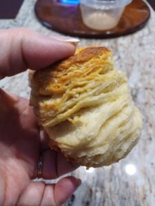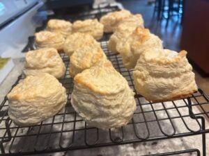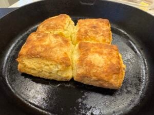 I was never a biscuit eater but my husband is so I thought I’d give it a try. They were easy, reasonably quick, and oh my, they are amazing. I was in shock that even I could make a flaky delicious biscuit.