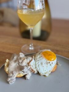 My husband’s whole reason for requesting these biscuits was biscuits and gravy, so it only feels right to include the gravy recipe here.