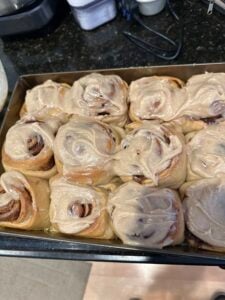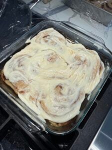 - When the cinnamon rolls are finished, let cool for about 10 minutes before adding your icing or glaze. Enjoy!
