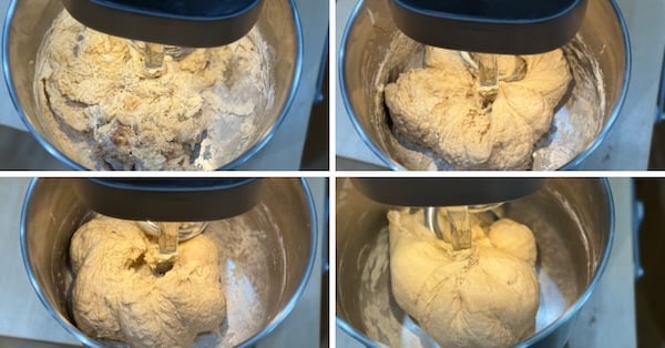 In stand mixer bowl fitted with a dough hook, combine All of the stiff sweet starter, All of the tangzhong, 100 g cool water, 80 g whole milk, 1 egg, 5 g vanilla extract, 25 g sugar, 515 g bread flour, 3 g cinnamon, and 12 g sea salt. Mix on low 2-3 minutes until incorporated, then medium-low 7-15 minutes until smooth.Note: Lower wattage stand mixers (250-325W) may need 15-20 minute rest breaks if they get hot. They may also take double or even triple the time estimates referenced here. You can finish with hand kneading if your machine isn't getting the job done. Higher wattage mixers (500-650W) typically don't need pauses and should get the job done in the times referenced here.